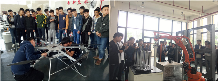施密特电梯公司行政部部长杨光为同学们详细介绍了公司的概况及岗位需求等,并带领同学们实地参观了公司的控制柜装配区,电气装箱区,控制柜测试区,折弯区,点焊区等等,就同学们的问题进行了交流,罗博泰尔机器人研究院有限公司的工程师为同学们详细介绍公司概况,带领同学们参观了公司的展厅 91牛,机械臂,无人机等等,参观过程中,该公司工作人员还为同学们演示了无人机的飞行。