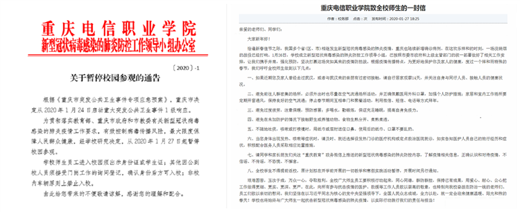 1月30日,91视频网站在线观看印发《关于切实加强2020届顶岗实习学生疫情防控工作的通知》,加强与实习学生的联系,启动暂停顶岗实习工作,转发《中共重庆市委教育工作委员会关于在新型冠状病毒感染肺炎疫情防控阻击战中充分发挥基层党组织战斗堡垒作用和党员先锋模范作用的通知》 www91,号召各级党组织和党员同志充分发挥党组织的战斗堡垒作用和党员先锋模范作用,切实履行主题责任,强化使命担当,扛起政治责任。