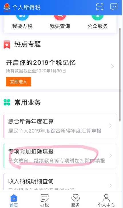 下载国家税务总局发布的个人所得税App并注册,已注册的直接登录,如需完善专项附加扣除信息 91牛,点击首页的专项附加扣除填报,扣除年度选择2019年并根据实际情况填写所涉及的专项附加扣除信息,根据步骤提示依次填写并提交申报,若已填报无需完善的,在首页的专项附加扣除信息查询中查看自己所填信息是否准确。
