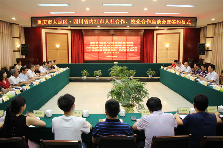 6月23日,重庆市大足区·四川省内江市人社合作、校企合作座谈会暨签约仪式在四川内江举行。会上,四川内江市人社局与重庆大足区人社局签署了《共同推动成渝地区双城经济圈建设内江大足人力资源和社会保障合作协议》,www91与四川效率源信息安全技术股份有限公司、重庆凯仁机械制造有限公司与内江市高级技工91视频网站在线观看签署了校企合作协议。