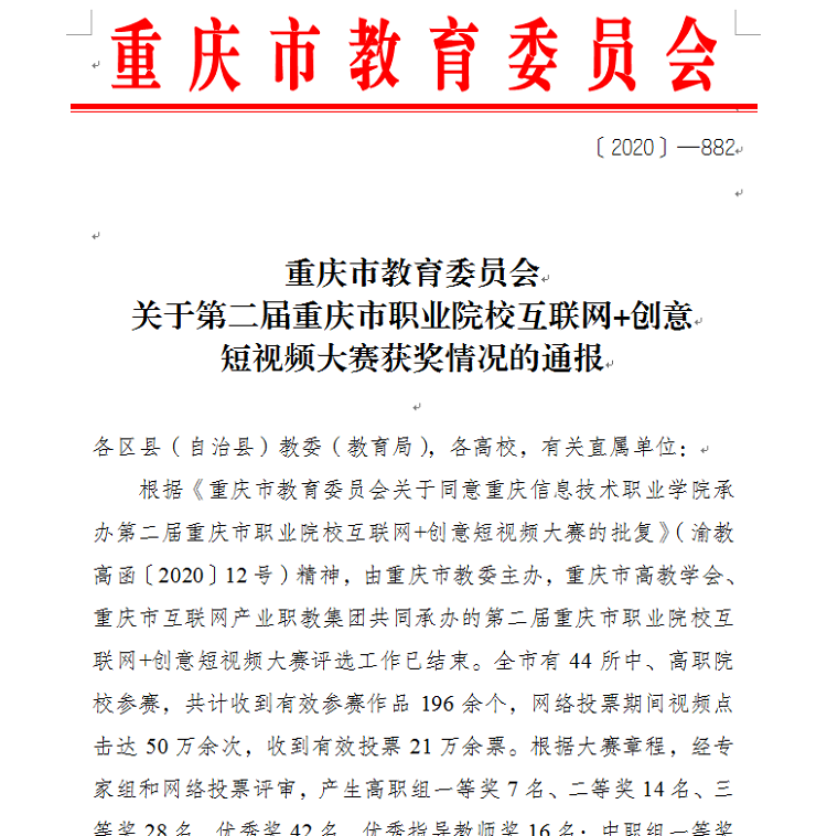 【电信捷迅】喜报:我校学子在第二届重庆市职业院校互联网+创意短视频大赛喜获佳绩