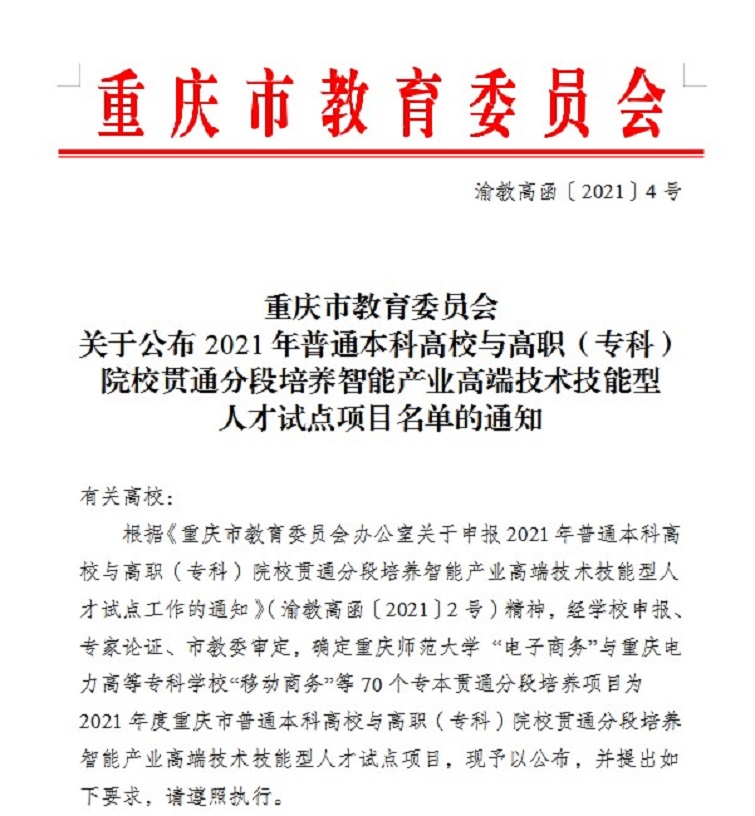 【电信捷讯】我校计算机网络技术专业获批2021年重庆“专本贯通”分段培养试点项目