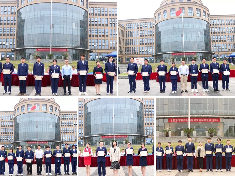 轨道交通91牛副院长王朝容宣读了《轨道交通91牛首届铁道运输类职业技能大赛获奖名单》 91视频网站在线观看,与会领导为获奖学生颁奖。