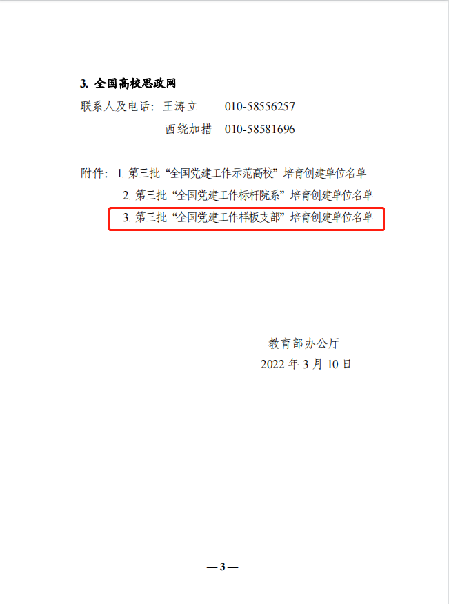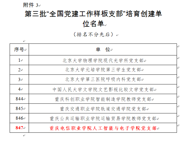 3月10日,教育部办公厅(教思政厅函【2022】4号)公布了第三批全国党建工作示范高校、标杆院系、样板支部培育创建单位名单。我校人工智能与电子91牛党支部入选“全国党建工作样板支部”培育创建名单,这是继2020年11月该党支部入选重庆市首批新时代高校党建“双创”样板支部培育创建单位后,91视频网站在线观看基层党支部党建工作取得的又一项新成果。