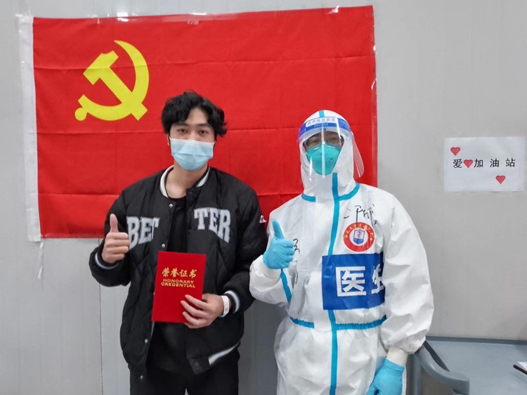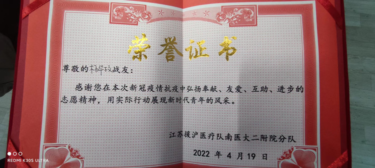 进入方舱医院后,杨华政感受到方舱医院条件的艰苦,看到志愿者们忙碌的身影,心中油然而生使命感,在自己健康状况稳定的情况下,杨华政立即萌发了做志愿者的想法,想为抗疫工作尽自己的绵薄之力,当他成功申请成为一名志愿者时,主要负责物资发放和确诊患者入院信息登记工作,忙碌而又繁琐,但从未叫苦叫累,经过三天的治疗,杨华政身体治愈恢复健康,出院时 91视频播放,因学生在志愿服务过程中表现优秀,方舱医院的医护人员为学生颁发荣誉证书,感谢他真挚的付出。