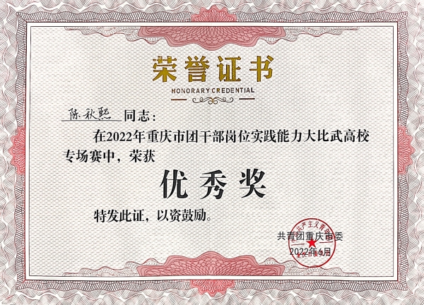 【喜讯】我校教师在2022年重庆市团干部岗位实践能力大比武大赛中喜获佳绩