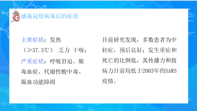 李红丽老师通过“疫情防控知识教育”专题,向同学们详细讲解了新冠病毒的来源,传播途径,感染后的症状,医院就诊的注意事项以及如何预防新冠病毒的感染等疫情防控知识,通过视频 91牛,以图文并茂的形式指导学生正确了解疫情的动态,远离谣言,相信科学,通过中外疫情防控措施事例的对比,让同学们明白了要把这次疫情当做学习的机会,要静下心来想一想自己的人生规划,树立正确的世界观,价值观,人生观,把我们祖国建设得更加强大。