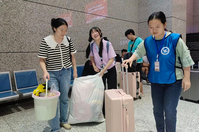 各站点工作人员有序引导新同学乘坐91视频网站在线观看班车、办理报到手续。他们的身影穿梭往返,热心接过新生手中行李,悉心指引前行路线,耐心答疑解惑,让属于电信学长学姐的温情洒满校园的每个角落,全力保障着迎新工作高效、有序地进行。